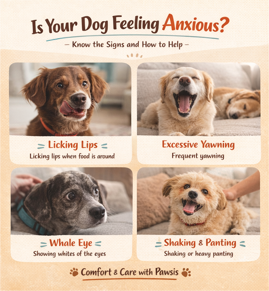 Lip Licking & Yawning: If your dog isn't hungry or tired, these are displacement behaviors. They yawn or lick their chops to self-soothe and signal that they are not a threat.