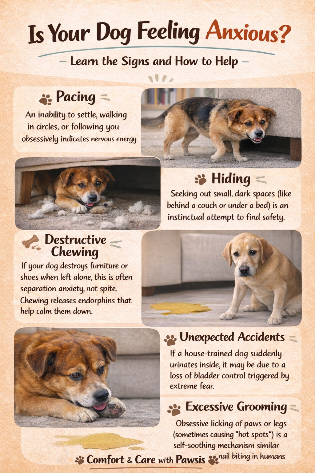 - Restlessness & Pacing: An anxious dog may walk back and forth, change positions constantly, or seem unable to relax. Low Body posture or tucked tail a lowered body, stiff posture, or tucked tail may indicate fear or insecurity